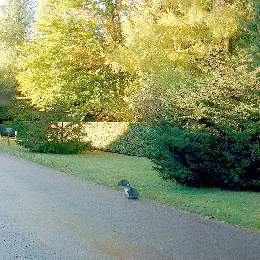 ひんやりした秋の朝、英国北部アーリントン・コートのガーデン近くにて。