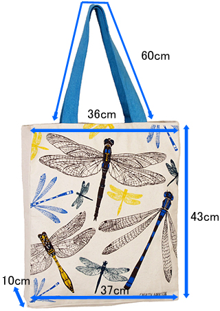 エメラルド・トンボとイトトンボをデザインしたゆったり、大きめのトートバッグです。
