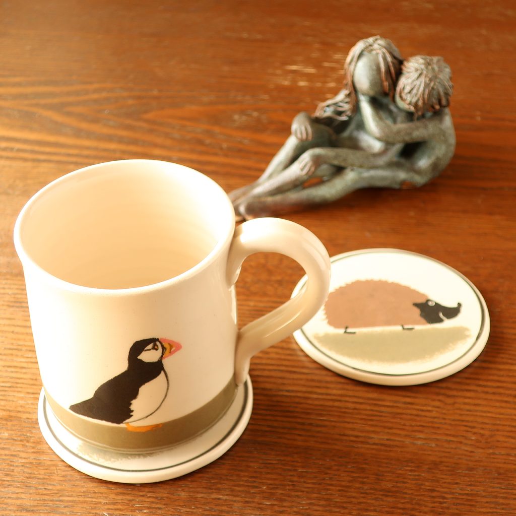 コースターは、マグカップやコーヒーカップ、グラスなどいろいろなカップに似合います。