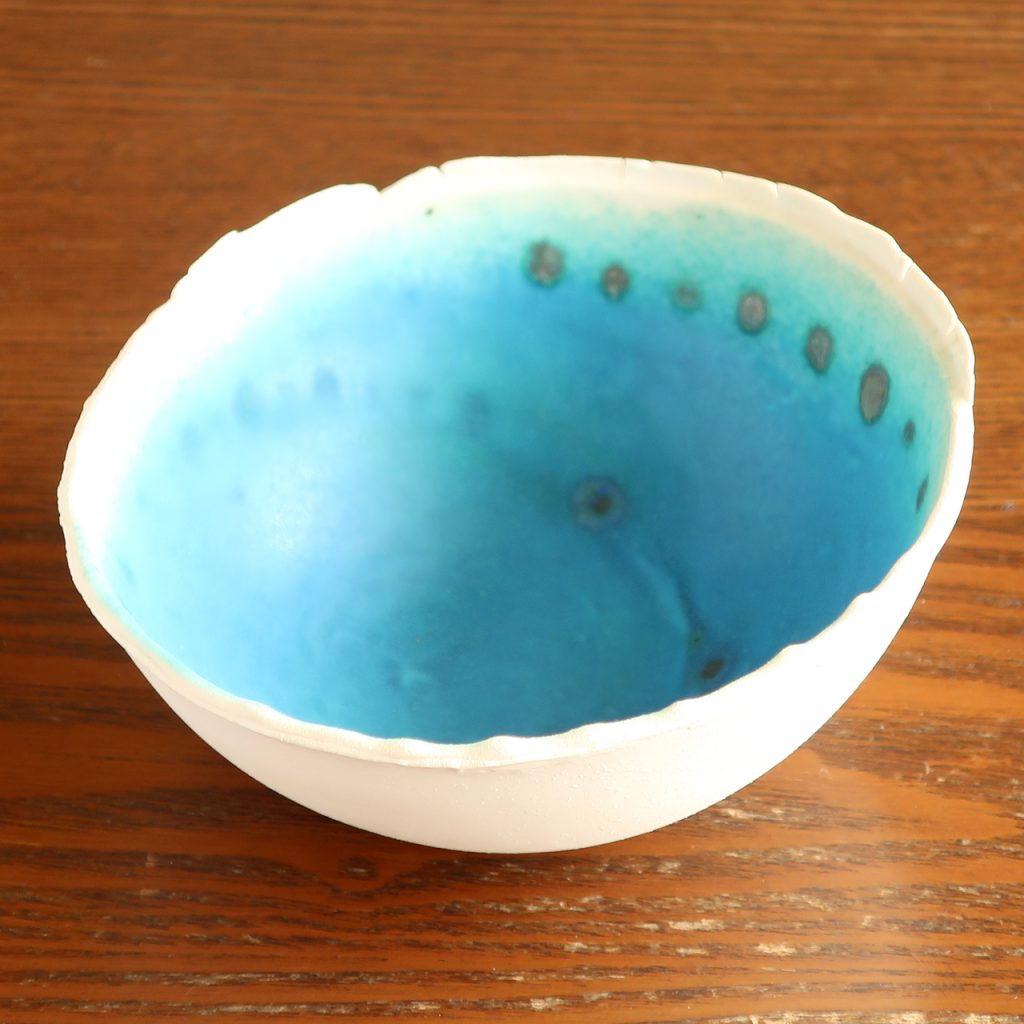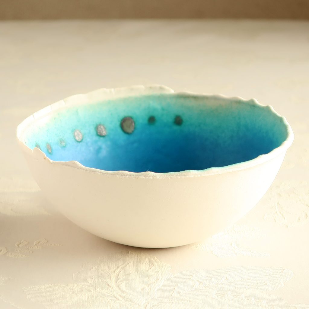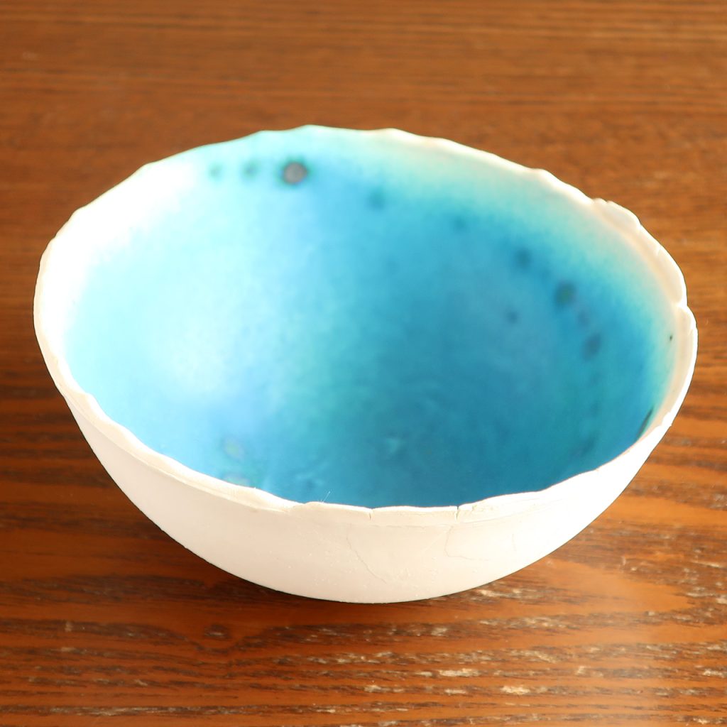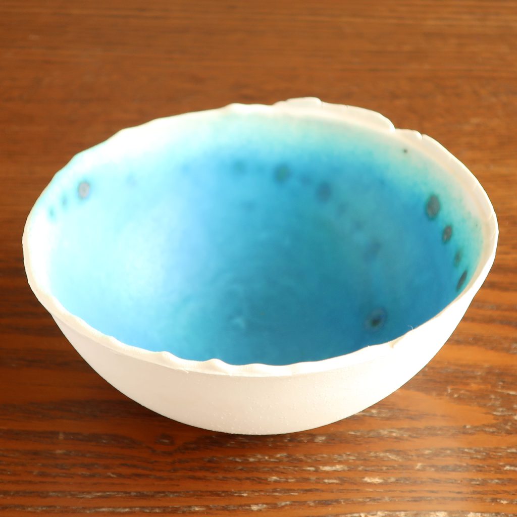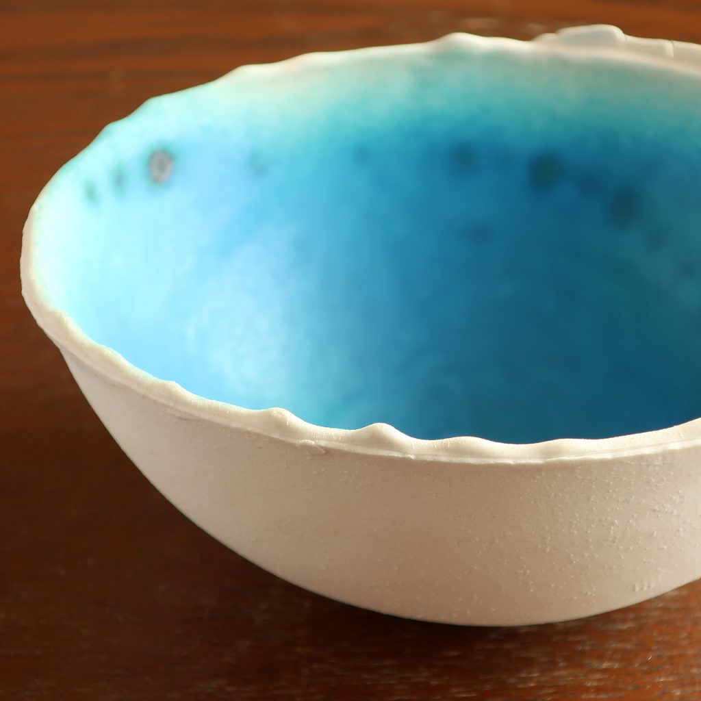 土や釉薬にこだわり、色合いのみならず手ざわりも海をイメージするようなものにチャレンジしています。