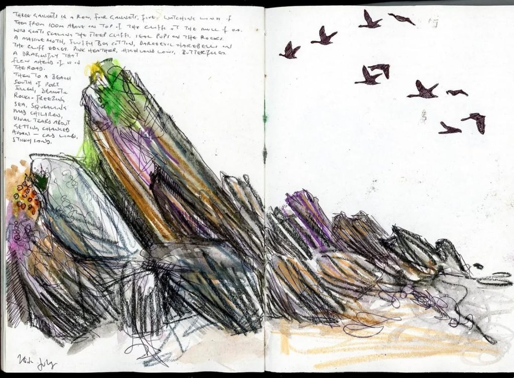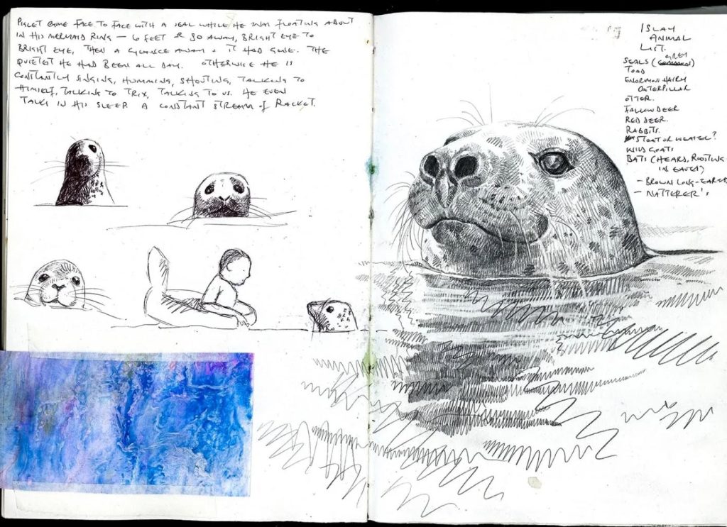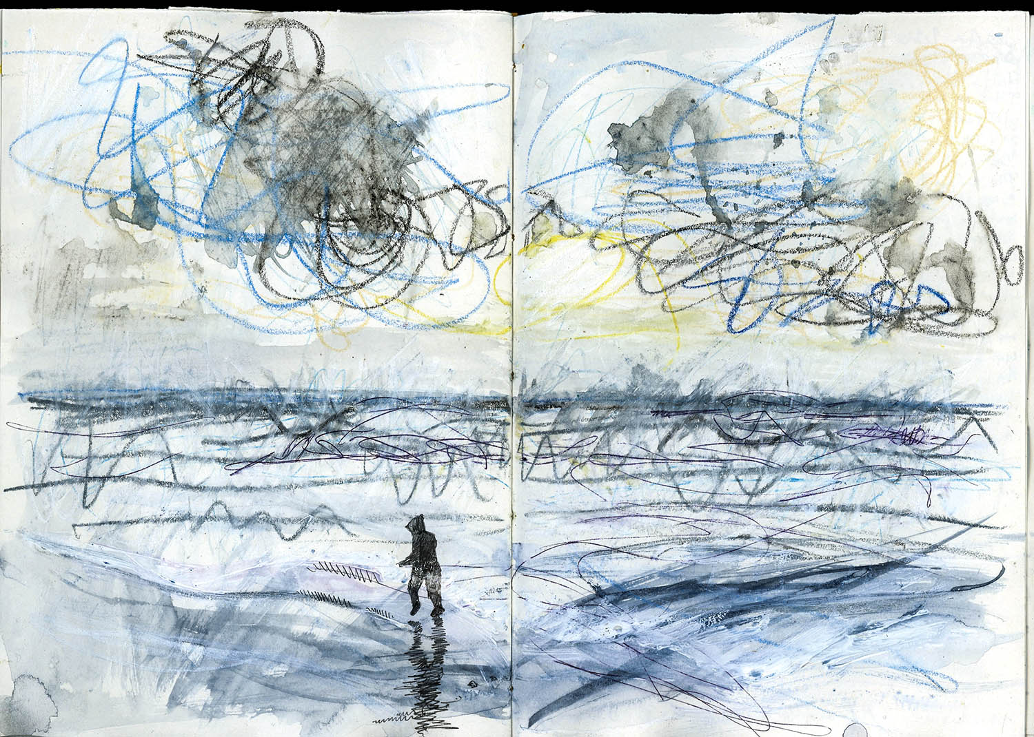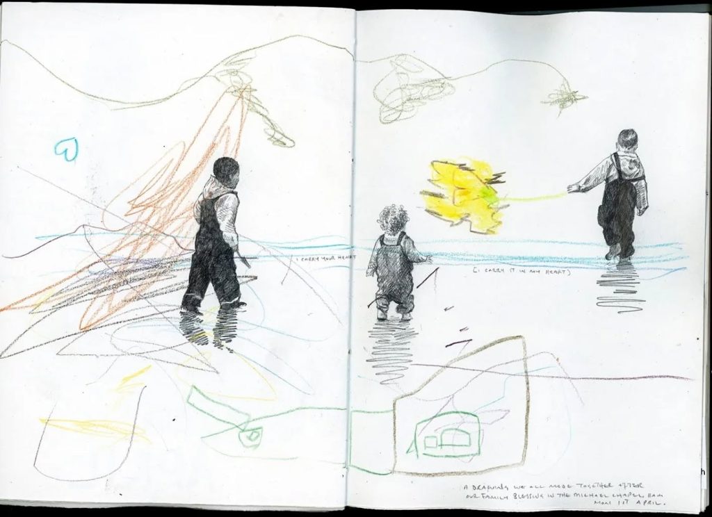 これまでのスケッチブックをじっくり見ていると、海辺にいるときの感覚、波の音、潮風の香り、カモメの声、かすかな魚のにおい、子どもたちの元気にはしゃぐ声を思い出しました。