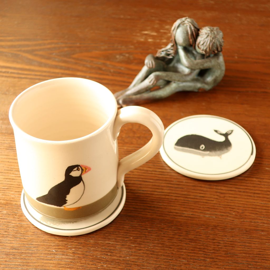 コースターは、マグカップやコーヒーカップ、グラスなどいろいろなカップに似合います。