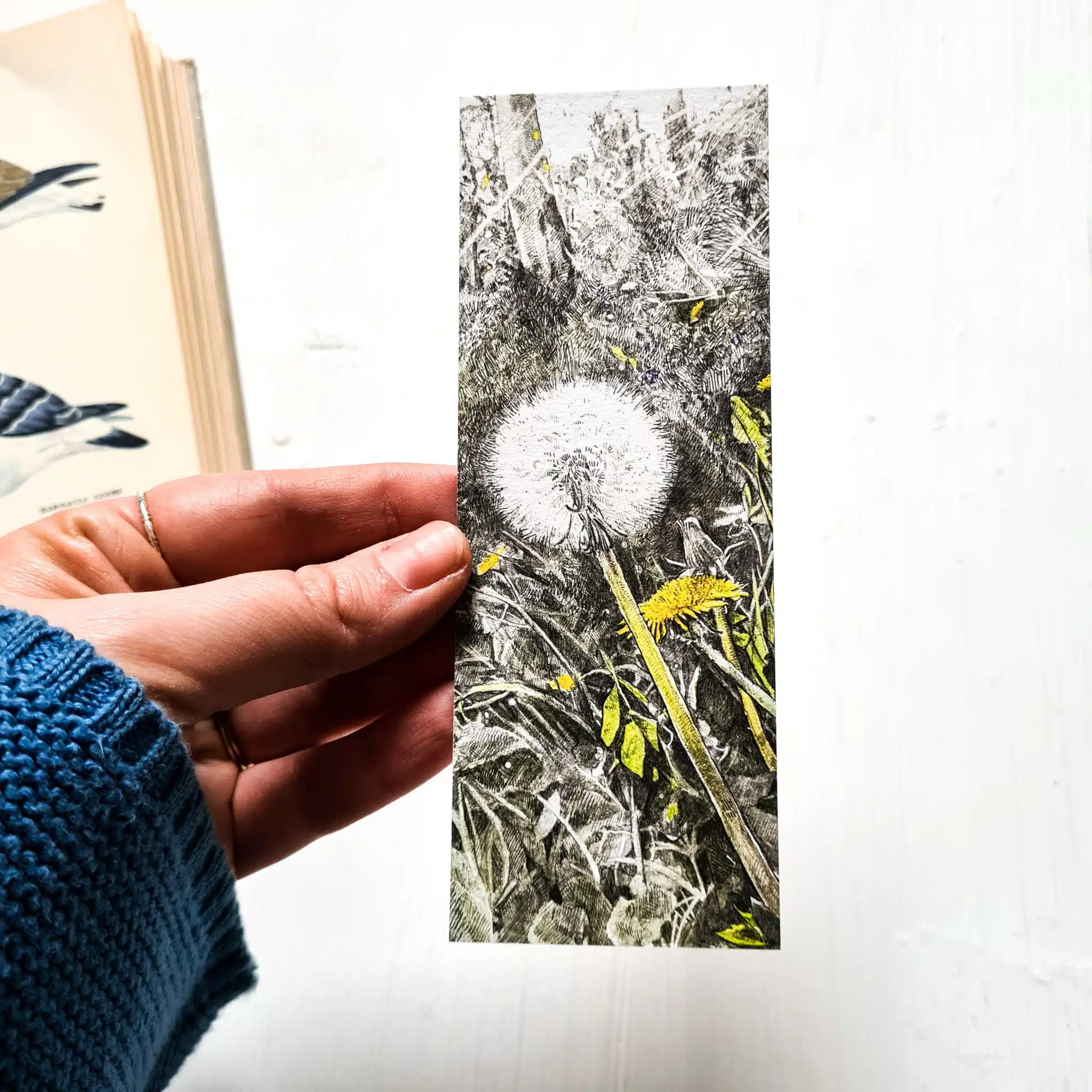 しおりは、水彩紙と類似の厚手で質感のあるカードに印刷されています。