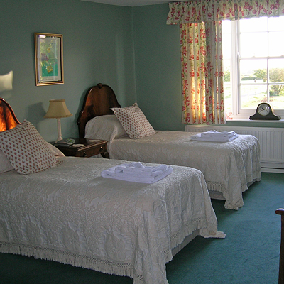 部屋は、2部屋のみ。ダブル・ルームは、シャワー付きで部屋から庭を望める。もうひとつのツィン・ルームは、風呂付きで部屋からはサーン・アッバスの丘陵が見える。